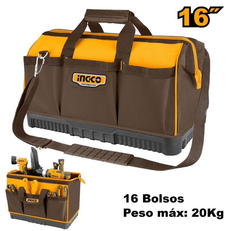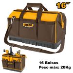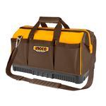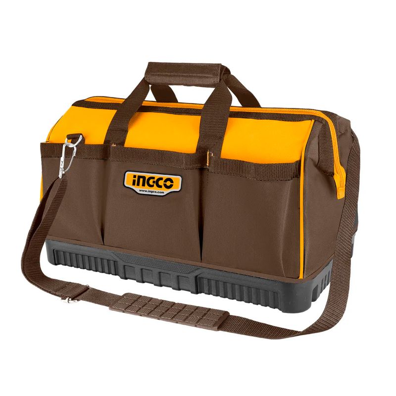 A Bolsa para Ferramentas INGCO de 16” com fundo emborrachado é ideal para organização e transporte seguro das suas ferramentas. Com estrutura rígida, facilita a abertura e o acesso rápido aos itens. Fabricada para suportar até 20 kg, possui 16 bolsos, incluindo compartimentos internos que permitem armazenagem prática e organizada. A base plástica reforçada aumenta a durabilidade e protege contra umidade e impactos. Medindo 41x25x26 cm, acompanha uma alça tira colo ajustável para maior conforto no transporte. Ferramentas não inclusas, e o produto vem embalado em saco plástico para proteção.