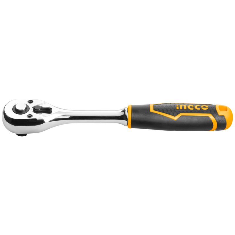 A Chave de Catraca Reversível Ingco 6" com encaixe de 1/4" e 45 dentes é uma ferramenta compacta e eficiente, ideal para trabalhos manuais que exigem precisão e praticidade. Fabricada em aço CR-V combinado com aço CRMO, garante alta resistência e durabilidade. Seu acabamento cromado fosco proporciona maior proteção contra corrosão e desgaste. Com um comprimento de 158mm, é leve e fácil de manusear, sendo perfeita para aplicações em espaços reduzidos. O mecanismo de catraca com 45 dentes permite um movimento suave e eficiente, enquanto o sistema reversível facilita a alternância entre aperto e desaperto. Comercialmente denominada como "Chave Catraca 1/4"", é acondicionada em cartela plástica, garantindo armazenamento seguro e organizado.