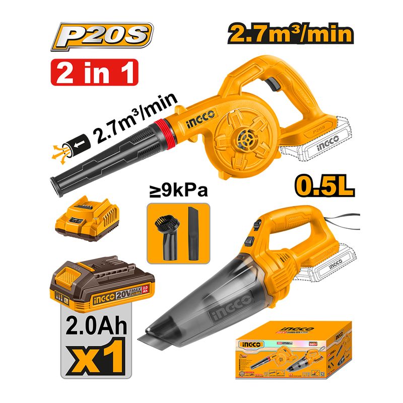 Combo Aspirador de Pó e Soprador à Bateria 20V – Linha P20S INGCO