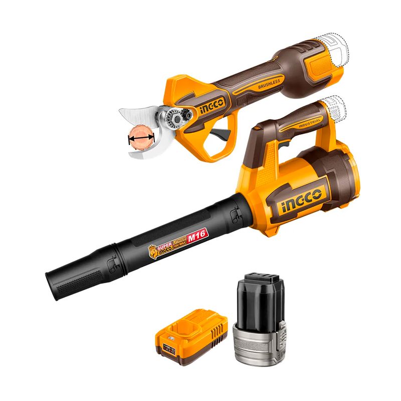 O Combo M16 INGCO reúne duas ferramentas essenciais para cuidados no jardim, unindo potência, praticidade e mobilidade em um único kit.