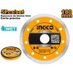 Disco Diamantado Contínuo Ingco 7" (180mm x 22.2mm) é desenvolvido para cortes finos e precisos em materiais cerâmicos e pedras naturais. Feito com grãos de diamante de alta qualidade, garante cortes rápidos e sem rebarbas.