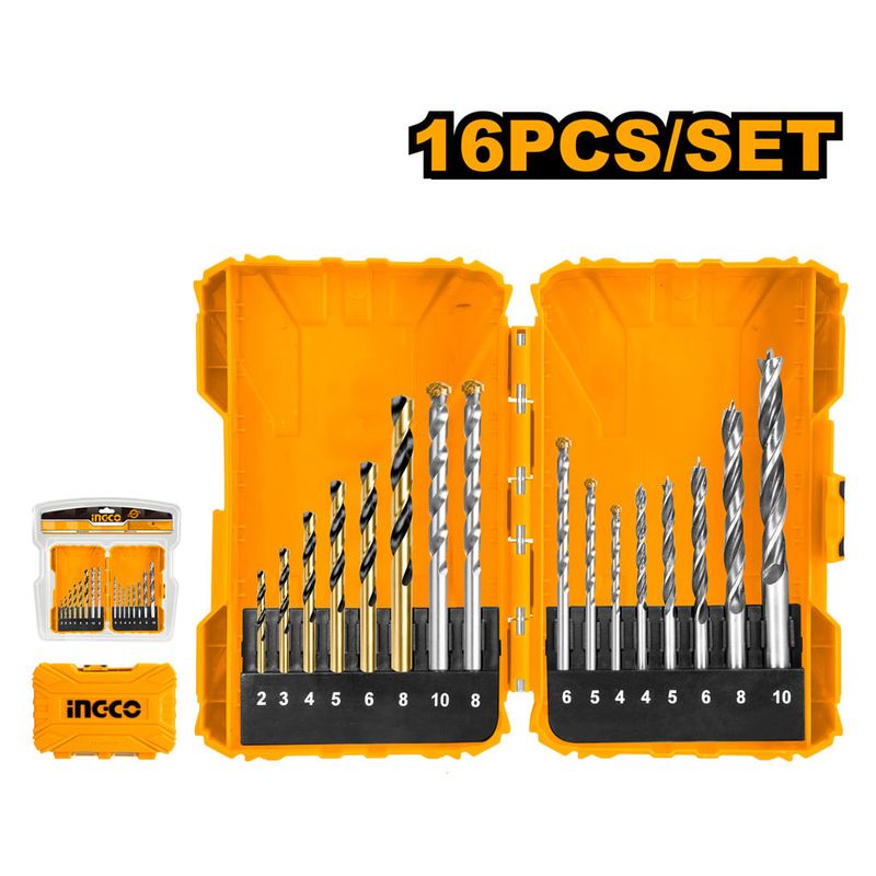 O Jogo de Brocas INGCO com 16 peças é a solução completa para quem precisa de versatilidade e precisão em perfurações em metal, alvenaria e madeira. O conjunto inclui 6 brocas para metal em tamanhos de 2mm a 8mm, 5 brocas para alvenaria com tamanhos de 4mm a 10mm e 5 brocas para madeira nos mesmos tamanhos de 4mm a 10mm, garantindo que você tenha a ferramenta certa para cada aplicação. Embalado em um estojo personalizado, este kit organiza e protege as brocas, facilitando o transporte e o armazenamento, e mantendo suas ferramentas sempre à mão. • Conjunto com 6 brocas para metal