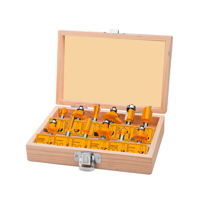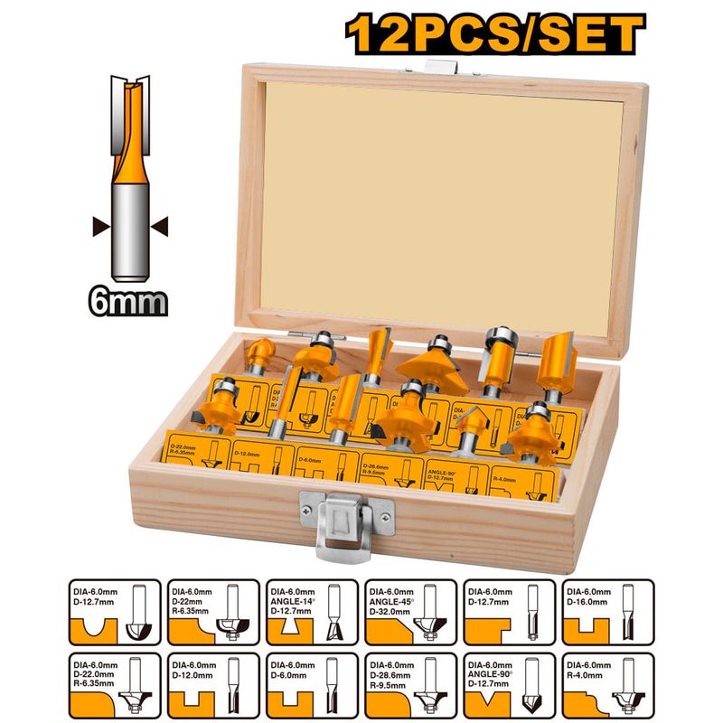 Jogo de Fresas para Tupia 6mm INGCO - Kit Profissional com 12 Peças