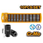 Jogo de soquetes de impacto longo com 10 peças INGCO