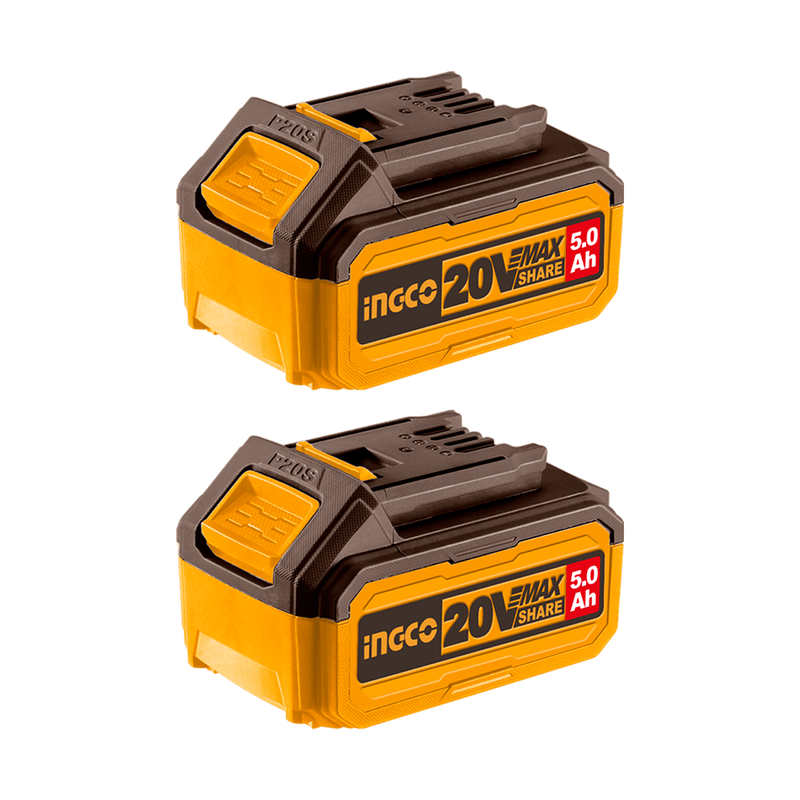 duas baterias íon-lítio de 4.0Ah para ampliar o tempo de uso das ferramentas INGCO, garantindo produtividade contínua com trocas rápidas e seguras.