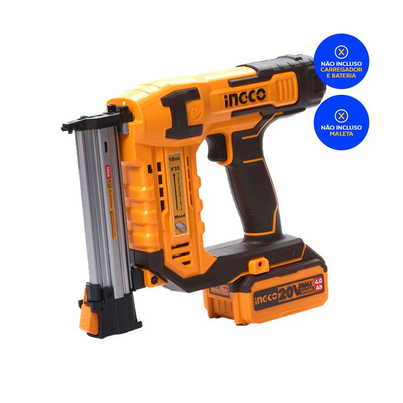 O Pinador INGCO 18GA 35mm à Bateria 20V traz praticidade e eficiência ao seu trabalho, eliminando a necessidade de compressores e mangueiras. Com micro nariz, oferece uma visão precisa e melhor controle na colocação dos pinos. Conta com ajuste de profundidade para maior precisão e sistema de liberação rápida para desobstruções. O gatilho selecionável permite operar em modo sequencial ou unitário, atendendo diversas necessidades. Compatível com pinos de F15 a F35, é a ferramenta versátil e confiável para acabamento impecável!
