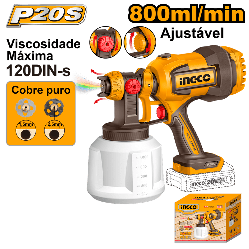 Pistola de Pintura INGCO 20V – Mobilidade e Acabamento Uniforme