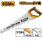 O Serrote Profissional Ingco 22” é ideal para cortes precisos e eficientes. Com lâmina de 550mm e espessura de 0,9mm, possui 7 dentes por polegada (TPI), garantindo um corte rápido e limpo. Fabricado em 65Mn e com tratamento térmico, oferece durabilidade e resistência. A empunhadura ergonômica proporciona conforto durante o uso, e o protetor de dentes aumenta a segurança, tornando-o uma excelente escolha para profissionais.