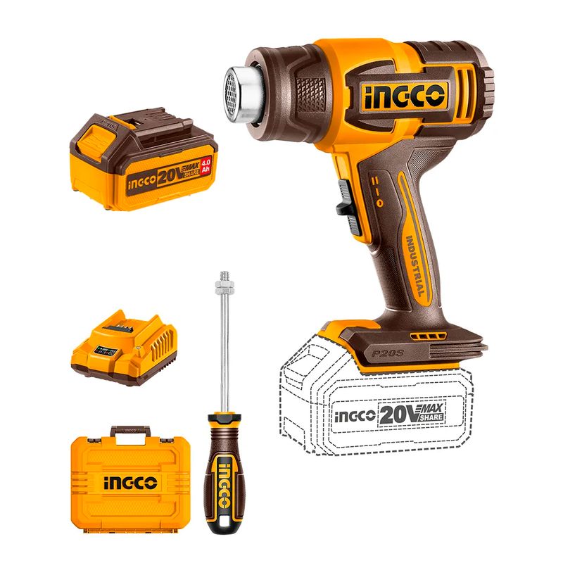 O Soprador Térmico INGCO 20V oferece potência e versatilidade para aplicações que exigem controle de temperatura preciso. Com duas temperaturas ajustáveis de 300°C e 550°C e fluxo de ar variável de 100 a 200 L/min, é perfeito para remoção de tinta, soldagem plástica, encolhimento de tubos e outras tarefas técnicas.